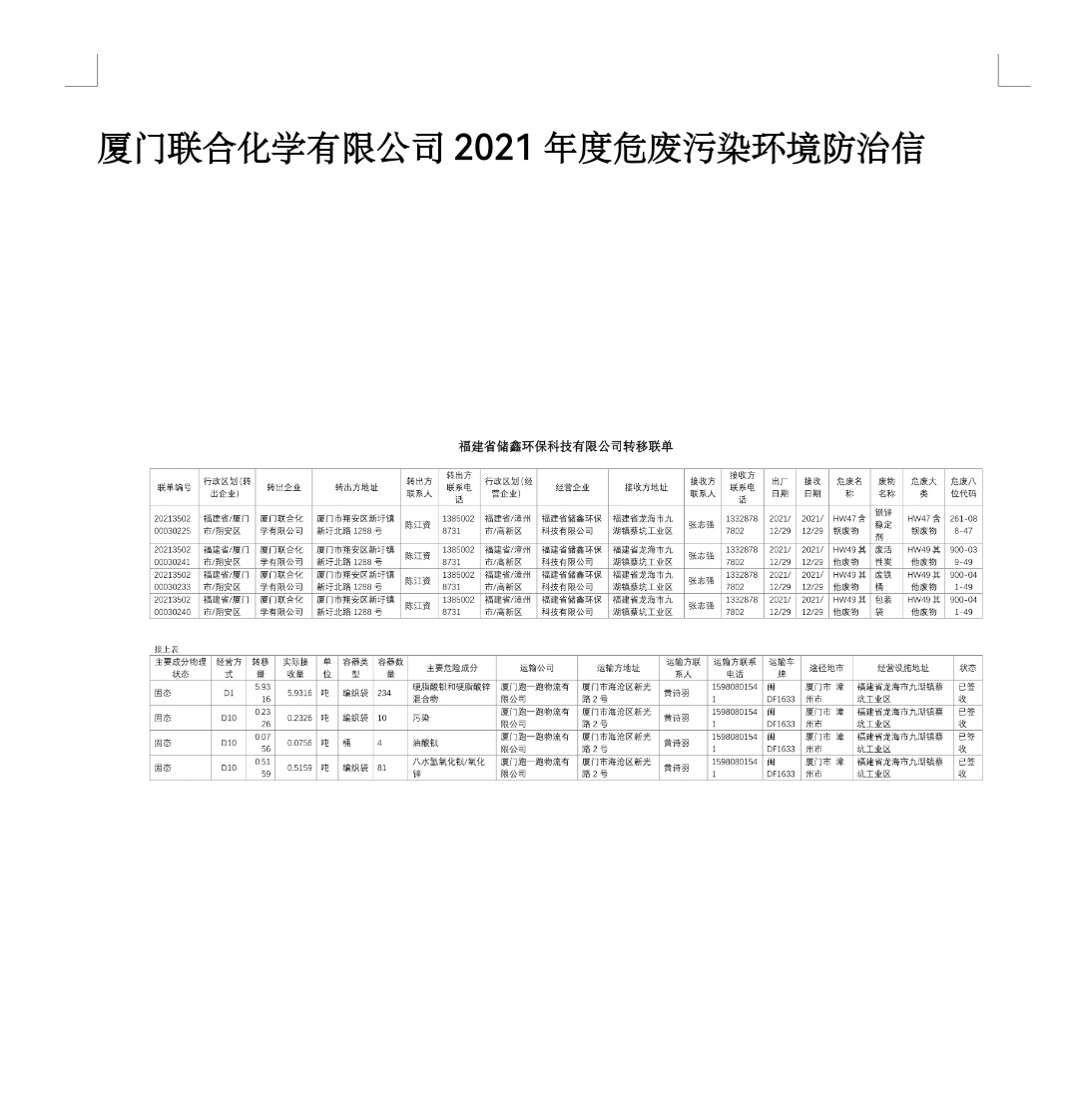 2021年度危废污染环境防治信